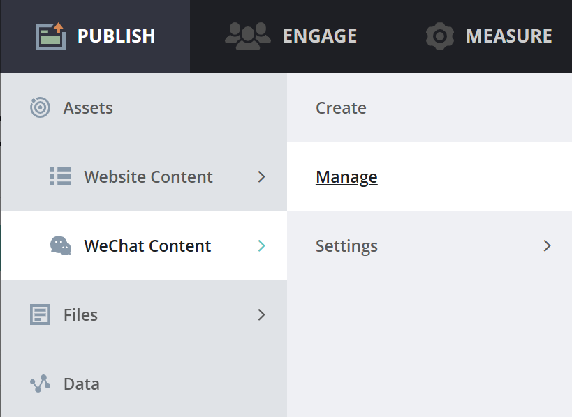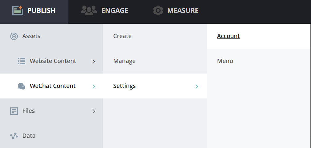 Go to the top menu and select PUBLISH > WeChat Content > Settings > Account. The Account Information page displays.